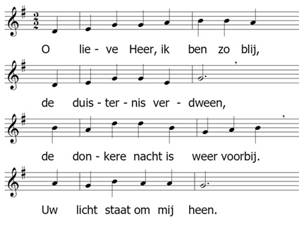 Zondag 4 mei 2025 om 10:00 uurMorgendienstVoorganger(s): ds. C. vd Meij uit Voorschoten Orde van dienst voor zondag 4 mei 2025 – De Goede Herder, Valkenburg Derde zondag van Pasen Welkom: door de ouderling van dienst Ochtendlied: Lied 204: 1, 7, 8 en 9 Bemoediging en groet Onze hulp is in de naam van de Heer Die hemel en aarde gemaakt heeft Die trouw blijft tot in eeuwigheid En nooit loslaat het werk dat zijn hand begon. Genade en vrede voor u, van God onze Vader Door onze Heer Jezus Christus In de gemeenschap met de Heilige Geest. Amen. Zingen: Psalm 33: 1 en 8 Voor de kinderen Kinderlied: Morgenlied (uit: Hanna Lam: Alles wordt nieuw II, 27) ![]() 2 Dank, dat ik voor Uw aangezicht, de lieve lange dag, met alle kind'ren van het licht spelen en zingen mag. 3 O lieve Heer, ik ben zo blij dat U mij steeds omringt. U bent niet ver, U bent dichtbij, dichtbij elk mensenkind. Gebed om ontferming Glorialied: Lied 654: 1 en 6 Gebed Lezing: Jeremia 32: 36-41 Zingen: Lied 995 Lezing: Lucas 24: 35-48 Zingen: Lied 645: 1, 2, 5 en 6 Verkondiging Zingen: Lied 708: 1 en 6 Dankgebed en voorbeden – stilte – Onze Vader (Mattheus 6: 9 t/m 13) Mededelingen Collecte Slotlied: Lied 650: 1, 2, 3, 4 en 7 Zegen afgesloten met gezongen Amen |