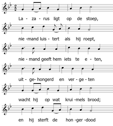 Zondag 28 september 2025 om 10:00 uurMorgendienstVoorganger(s): ds. C. vd Meij uit Voorschoten Tweede zondag van de herfst Welkom: door de ouderling van dienst Ochtendlied: Lied 217: 1, 4 en 5 Bemoediging en groet Onze hulp is in de naam van de Heer Die hemel en aarde gemaakt heeft Die trouw blijft tot in eeuwigheid En nooit loslaat het werk dat zijn hand begon. Genade en vrede voor u, van God onze Vader Door onze Heer Jezus Christus In de gemeenschap met de Heilige Geest. Amen. Zingen: Psalm 146: 1 en 3 Voor de kinderen Kinderlied: Lazarus (Hanna Lam, Alles wordt nieuw III, 17) ![]() 2 Binnen is de rijke man en hij neemt het er goed van. Er is brood voor nu en morgen, vrolijk feest hij zonder zorgen; tot de dood een einde maakt aan geluk en leef maar raak. 3 Lazarus wordt in die nacht door Gods engelen thuisgebracht. Maar de rijkaard met zijn weelde die het daaglijks brood niet deelde, vind geen plaats bij God, hij is buiten in de duisternis. Gebed om ontferming Glorialied: Lied 869: 1 en 3 Gebed Lezing: Amos 6: 1-7 Zingen: Lied 718: 1 en 2 Lezing: Lucas 16: 19-31 Zingen: Lied 718: 3 en 4 Verkondiging Zingen: Lied 723 Dankgebed en voorbeden – stilte – Onze Vader (Mattheus 6: 9 t/m 13) Mededelingen Collecte Slotlied: Lied 754: 1 en 3 Zegen afgesloten met gezongen Amen |